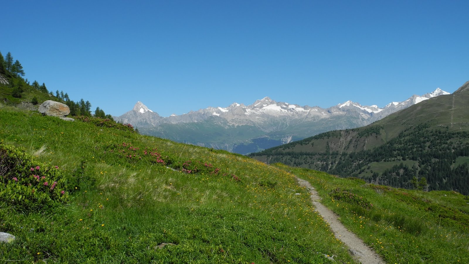 Aussicht vom Colle Mud - ganz rechts beginnt das Monte Rosa Massiv |